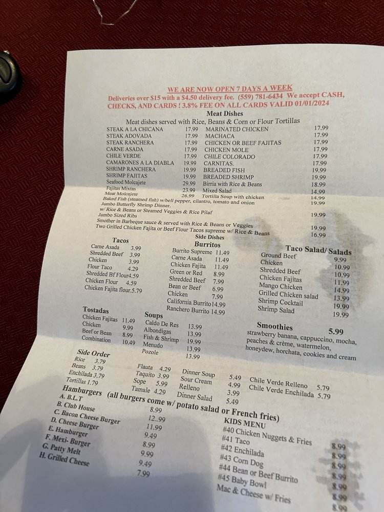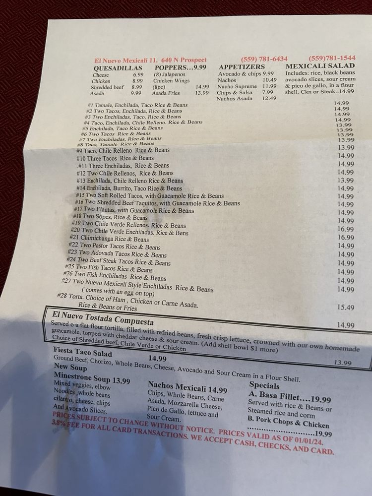 El Nuevo Mexicali II is a Mexican restaurant located in Porterville, CA, offering a wide range of delicious dishes and a variety of amenities. With a diverse menu featuring options like chile relleno burritos, green pozole, carne asada, and cheesy enchiladas, there is something for everyone to enjoy. Customers appreciate the friendly service and generous portion sizes, with many mentioning their satisfaction with the flavorful food. The restaurant provides a casual dining experience with outdoor seating, a full bar, and Wi-Fi, making it a great spot for gatherings or a leisurely meal. Don't miss the opportunity to try their specialty Micheladas and experience the nostalgic yet simple flavors that keep patrons coming back for more. Visit El Nuevo Mexicali II for a taste of authentic Mexican cuisine in a welcoming atmosphere.